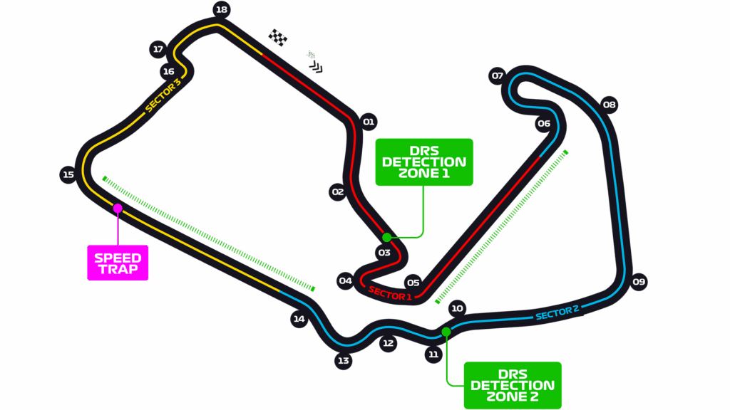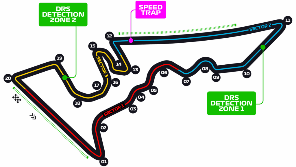 Each F1 track is divided into three sectors (Sector 1, 2, and 3).